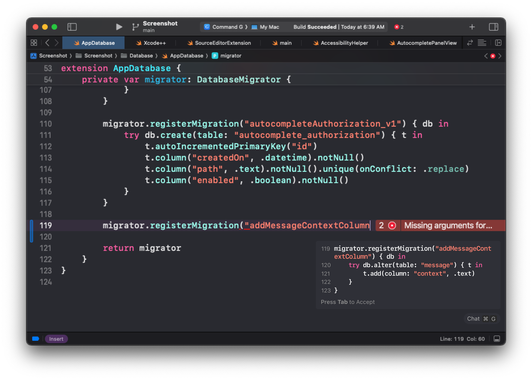 By integrating ChatGPT with Xcode, we've made it easier for you to insert your code as context in your conversations with ChatGPT. Having this copilot at your fingertips keeps you in flow so you can get more stuff done.